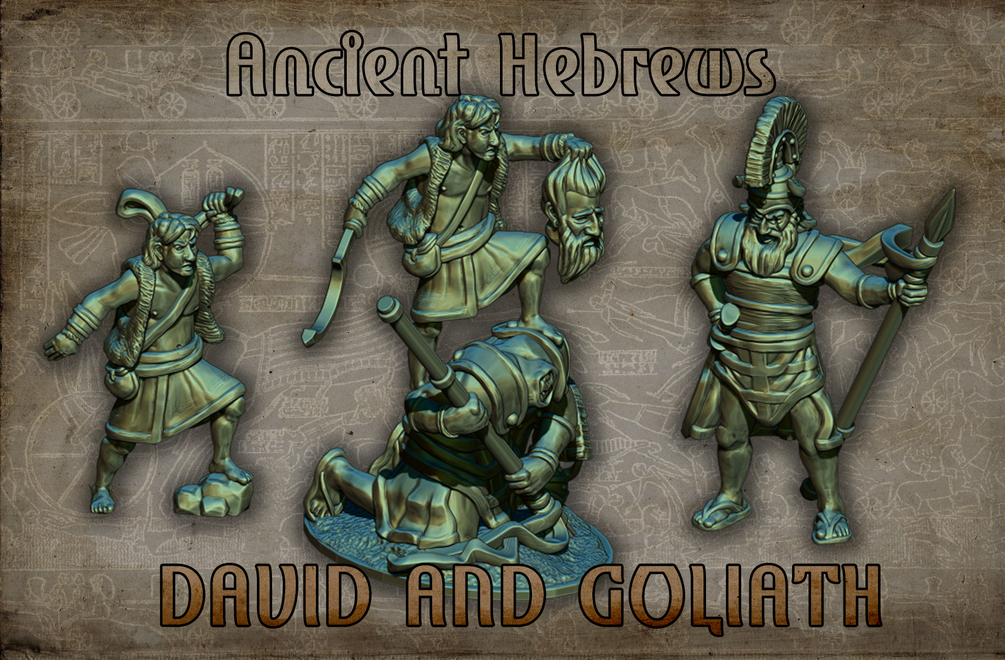 David vs.Goliath -Ancient Hebrews- (Diorama and individual models). 15mm and 28mm presupported STL files.