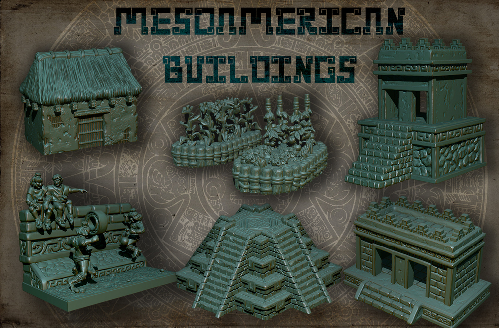 Mesoamerican buildings pack. 15mm and 28mm pressuported STL files.